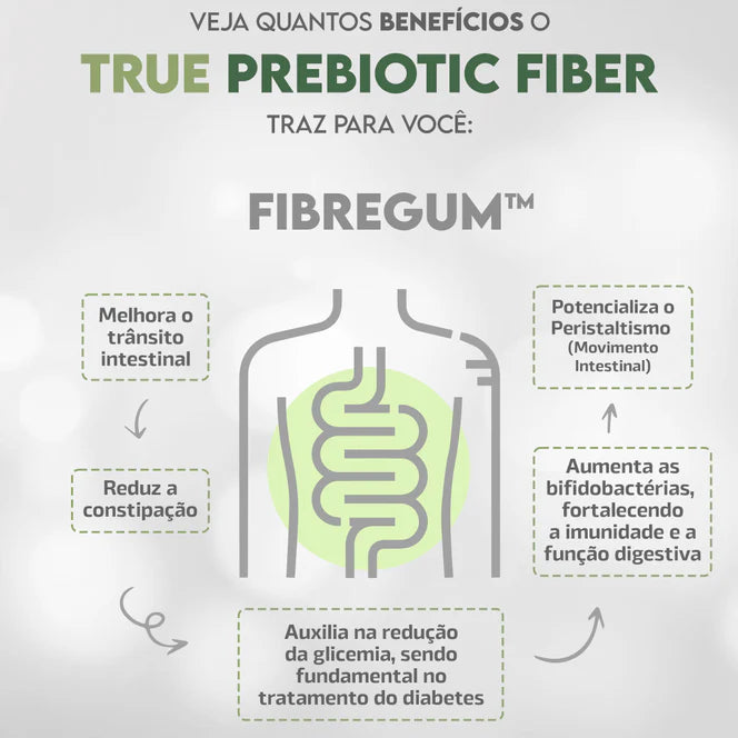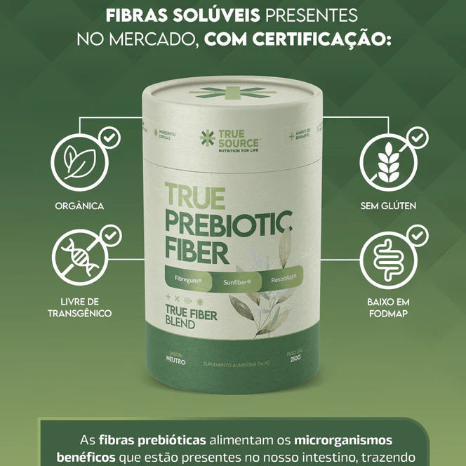 O True Prebiotic Fiber Neutro é um suplemento em pó formulado com fibras prebióticas de alta qualidade, desenvolvido para promover o equilíbrio da flora intestinal e o bem-estar digestivo. Com sabor neutro, pode ser facilmente adicionado a bebidas, shakes ou receitas sem alterar o sabor dos alimentos.