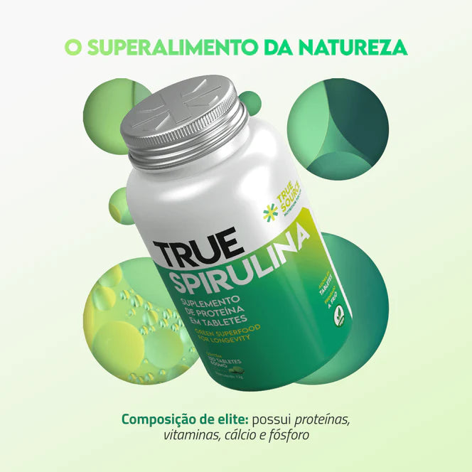 A True Spirulina é um superalimento natural, conhecido como o “alimento do futuro”. Trata-se de uma cianobactéria extremamente nutritiva, rica em aminoácidos essenciais e fonte concentrada de ferro, vitamina B12, cálcio, fósforo e betacaroteno, oferecendo suporte completo para a saúde e vitalidade.
