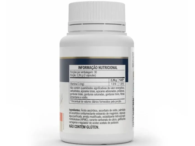 Ácido ascórbico, ascorbato de sódio, palmitato de ascorbila e antiumectante estearato de magnésio. Composição da cápsula: hidroxipropilmetilcelulose (HPMC), água purificada, opacificador (corante carbonato de cálcio e amido modificado), gelificante carragena e regulador de acidez acetato de potássio.